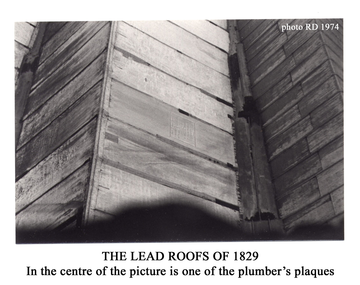Work on the interior of the building described above was dependent upon the outside shell of the building, walls and roof, being finished and water-tight. In fact the walls and roof progressed quickly during 1829. There was discussion about using Queen slates for the inner surfaces of the main roof because it was thought that the old lead when recast might be insufficient. In the end, roofs of the main aisles were covered in lead and the chancels with Imperial slates, materials which had been used previously (23).