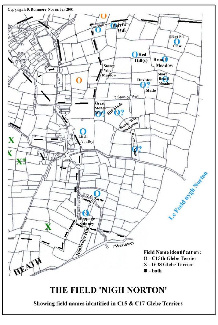 The Field nigh Norton is absent from all of the Glebe Terriers of the 17th century ie 1606, 1638 and 1679, although the rectory held land in each of the other seven Fields in 1606 and 1638. This was reduced to six Fields in 1679, when the rectory also had no land in Bridge Hill Field. It is important to try to work out why this should have been.